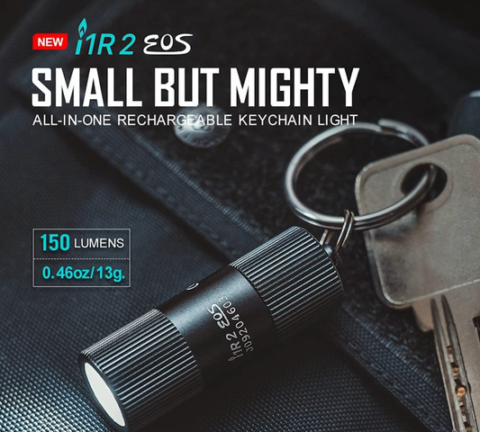 OLIGHT i1R 2 EOS 150 Lumens Tiny Rechargeable Keychain Flashlight EDC Desert Tan